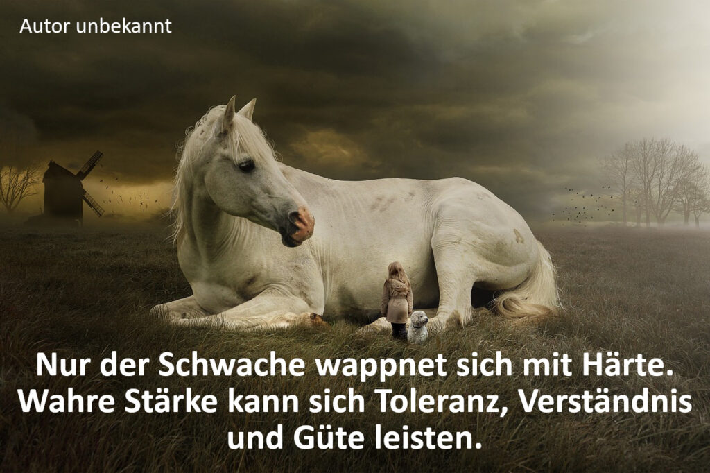Innerlich schwache Menschen, Menschen ohne ausreichendes Selbstwertgefühl wollen Macht, um ihrem eigenen, inneren Minderwertigkeitsgefühl zu begegnen. Während Menschen mit einem gesunden Selbstwertgefühl, mit innerer Stärke sich Toleranz, Verständnis und Güte leisten können.